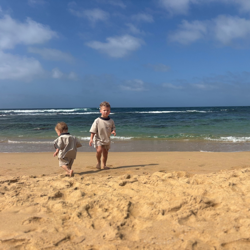 Our Christmas Limited Edition set is an absolute must-have this festive season. With a clean, minimal stone base, we’ve turned up the boldness through our fresh bright-red embroidered detailing. Staying true to the KOA + KAI vibe, our custom-made box-fit tee and baggy short combo is all about laid-back style and next-level comfort.
