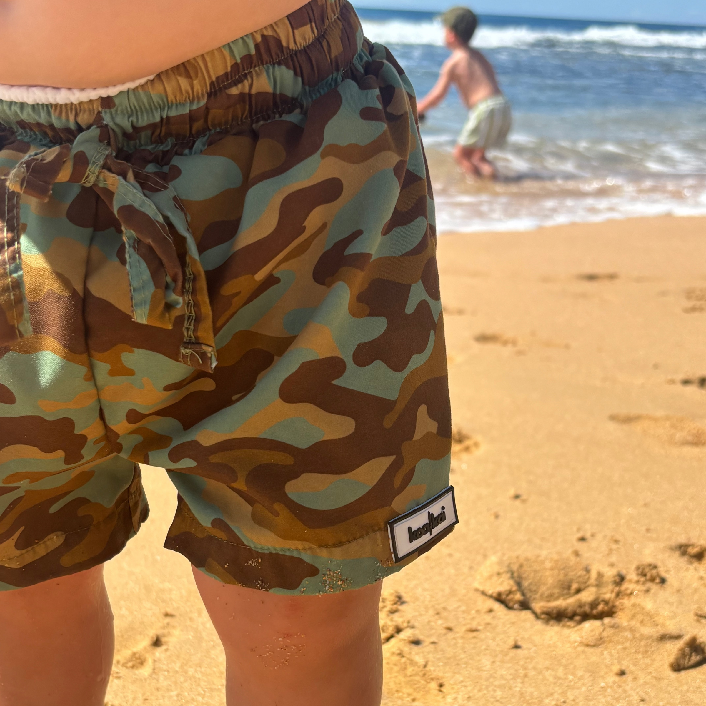 These Camo Boardies are a true showstopper and an absolute must-have for all our amazing customers. Thoughtfully designed by our founder, every shade in this camo palette was hand-selected to achieve the perfect balance: refined, modern, and not too brown nor too green. The result? A beautifully curated camo print that feels just right.