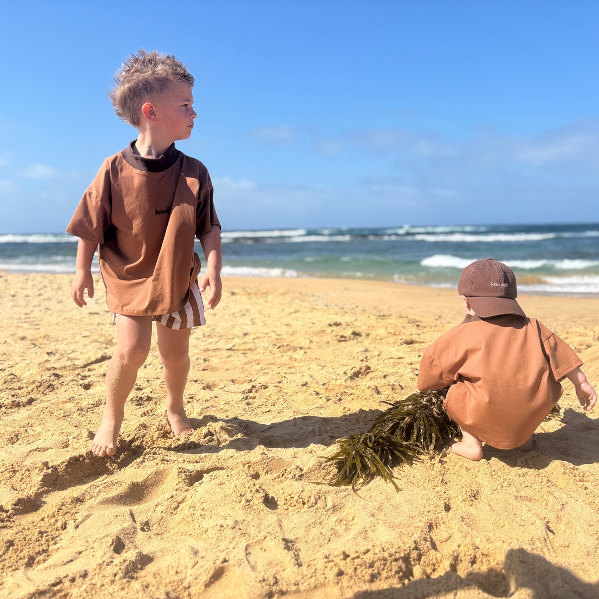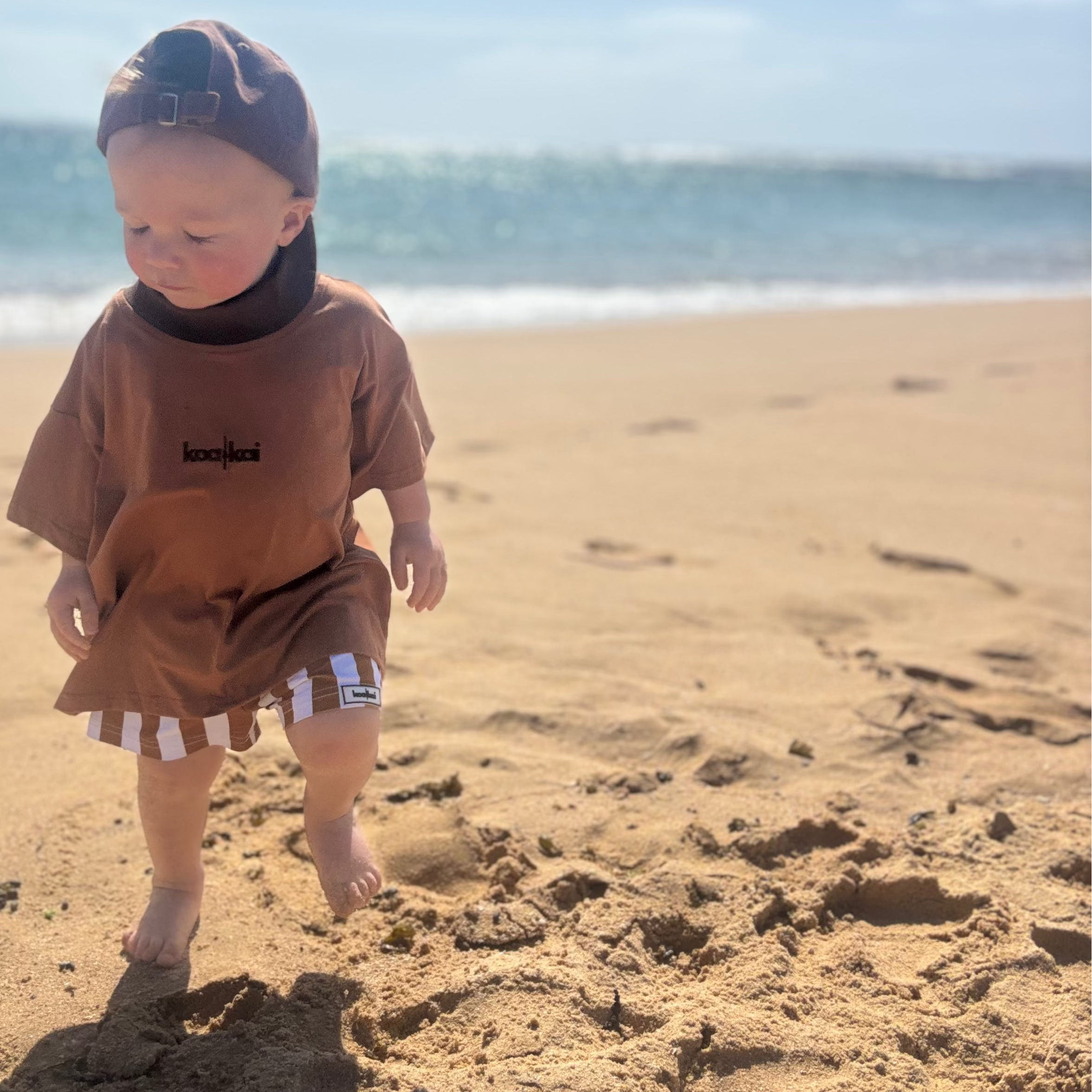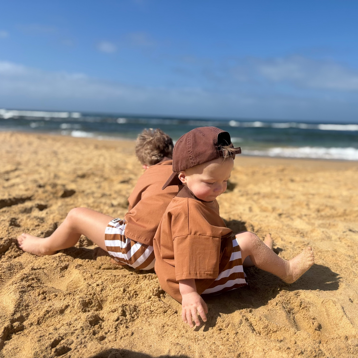 You asked and we delivered — our famous chocolate-brown and white stripe boardies are back! These super fun shorts can be worn in the water or out and about, making them perfect for any adventure.