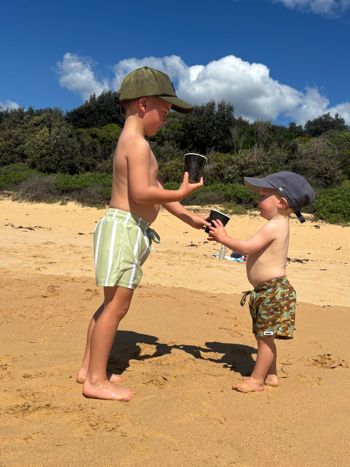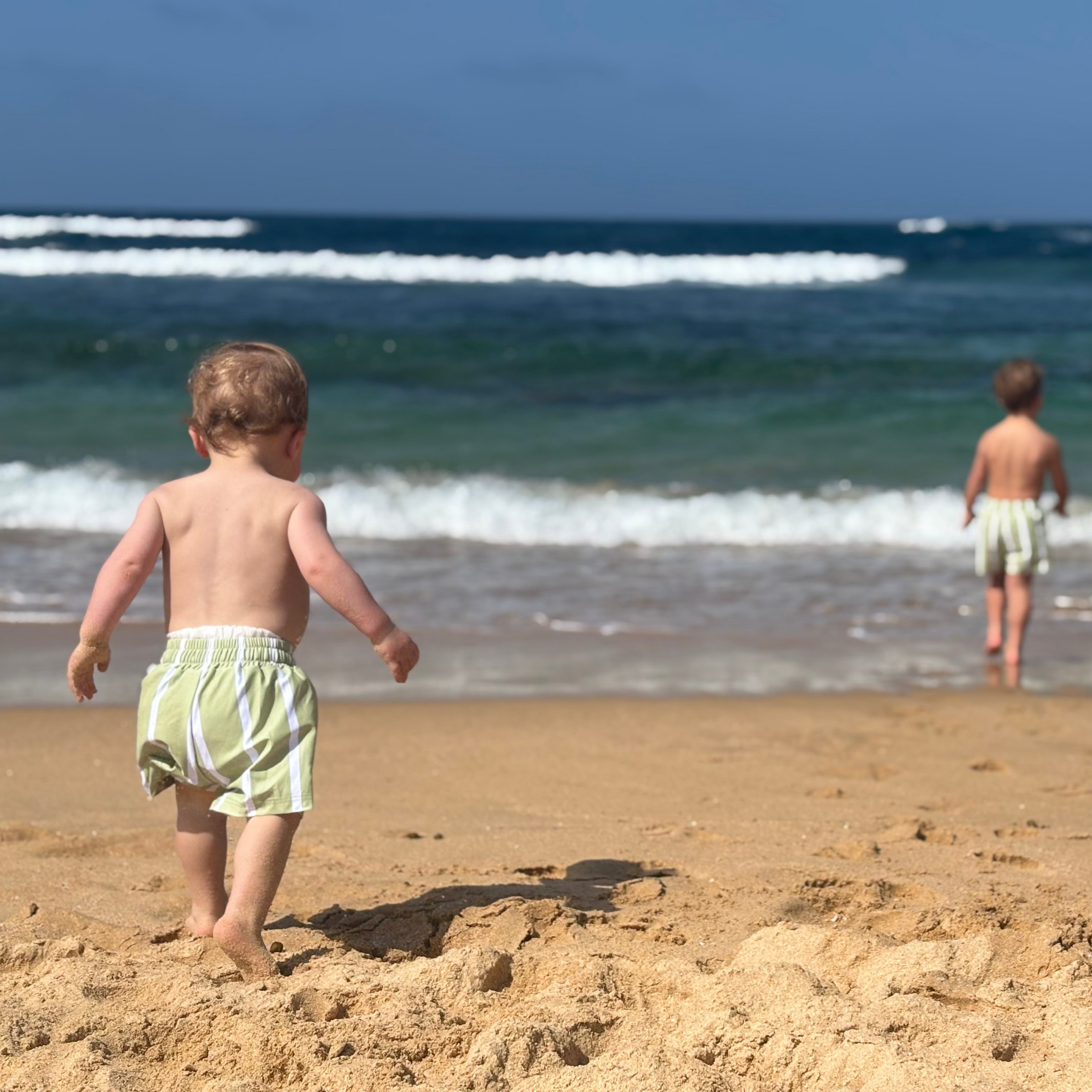 Our newly fabricated boardies are made from a fresh, upgraded 100% polyester material. They’re incredibly lightweight, and their quick-drying capabilities are unmatched. Designed with our standard internal mesh, they help keep everything comfortably in place (nappies included, if worn).